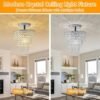 Compact Size: Measures 11 cm in height and 7.9 cm in width. Suitable for rooms sized between 6-10 , bedroom chandelier. Ensure the size matches your requirements before ordering. Modern Glamour: Featuring three layers of raindrop crystals adorning a sleek chrome frame made of stainless steel, this flush mount chandelier adds a touch of bling and elegance to any space. Versatile Application: Ideal for various settings including living rooms, hallways, bedrooms, and even trendy apartments, this crystal chandeliers brings a sophisticated allure to any environment. Flush Mount Design: Compatible with AC110-260V power supply. Designed to fit any E26 bulb base (Bulb Not Included). Superior Material: Poly-carbonate acrylic crystals are scratch-resistant and do not break easily, unlike glass. Give it a try, we think you ll love it!