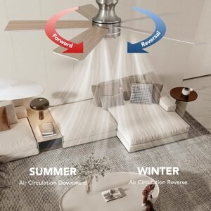 Dimensiones y diseño: este ventilador de techo de 132,1 cm cuenta con una pantalla de 19,1 cm de diámetro, añadiendo un toque de elegancia moderna a tu habitación. Con 5 cuchillas elegantes, no solo proporciona una circulación de aire eficiente, sino que también sirve como una pieza de decoración elegante, mejorando el ambiente general de tu espacio vital Luz LED y velocidad del viento: equipado con una fuente de luz LED avanzada, este ventilador de techo ofrece iluminación regulable y ajustable en color. La temperatura de color se puede ajustar fácilmente de un cálido 3000 K a un frío de 6500 K, lo que te permite crear el ambiente ideal para cualquier ocasión. También tiene ajuste de viento de 6 velocidades y una función de temporizador de 2 horas, lo que garantiza que siempre puedas encontrar el ajuste más cómodo Métodos de control: Para una máxima comodidad, esta lámpara se puede controlar de múltiples maneras. Puedes utilizar el control remoto, el control de pared o incluso la aplicación del teléfono móvil para ajustar la configuración. Ya sea que estés relajándote en el sofá o en la cama, puedes controlar fácilmente el ventilador y la luz sin tener que levantarte Rendimiento del motor: El motor de alto rendimiento de este ventilador de techo de níquel cepillado con luz funciona silenciosamente y está diseñado para ser reversible. En verano, puedes configurarlo en modo de corriente descendente para una brisa fresca, y en invierno, cambiar al modo de corriente ascendente para hacer circular el aire caliente. El motor proporciona un potente flujo de aire mientras mantiene un rendimiento silencioso, creando un ambiente de vida cómodo y pacífico. También ahorra energía, lo que te ayuda a reducir las facturas de electricidad Atención al cliente: Estamos dedicados a brindarle la mejor experiencia al cliente. Nuestro equipo de atención al cliente 24/7 siempre está listo para ayudarlo con cualquier pregunta o problema que pueda tener. También proporcionamos instrucciones detalladas de instalación y videos para facilitar el proceso de instalación