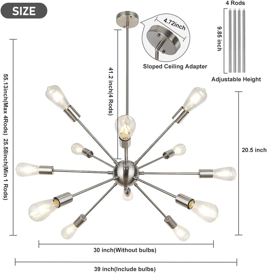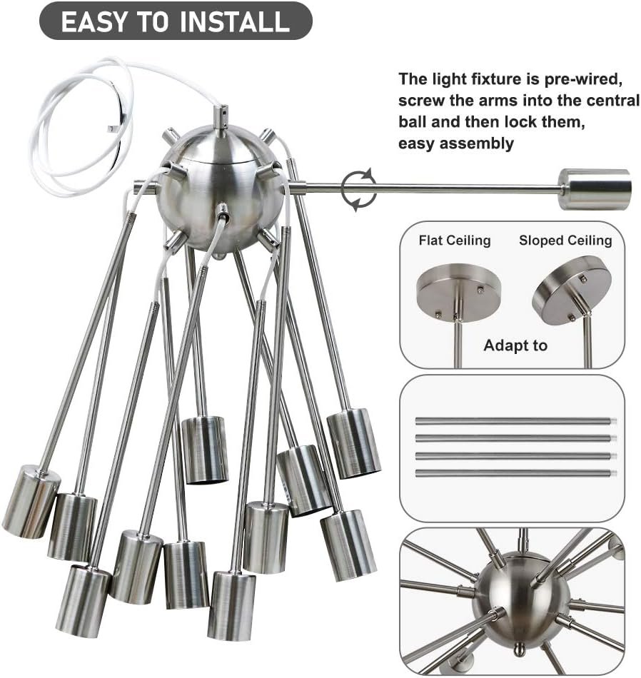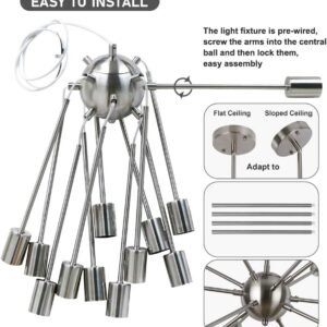 Fáciles de instalar: Las lámparas de araña Sputnik actualizadas se han conectado con antelación, para solo atornillar cada brazo en la bola central y enhebrar el cable principal a través de las varillas de extensión, luego instalar el accesorio en una base de techo.