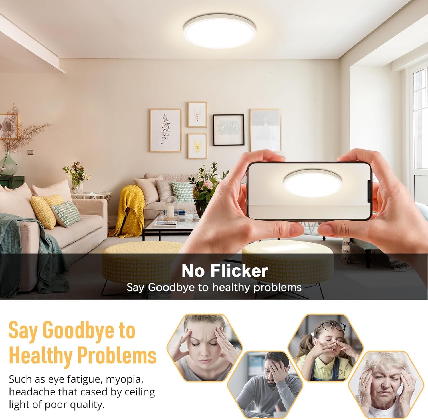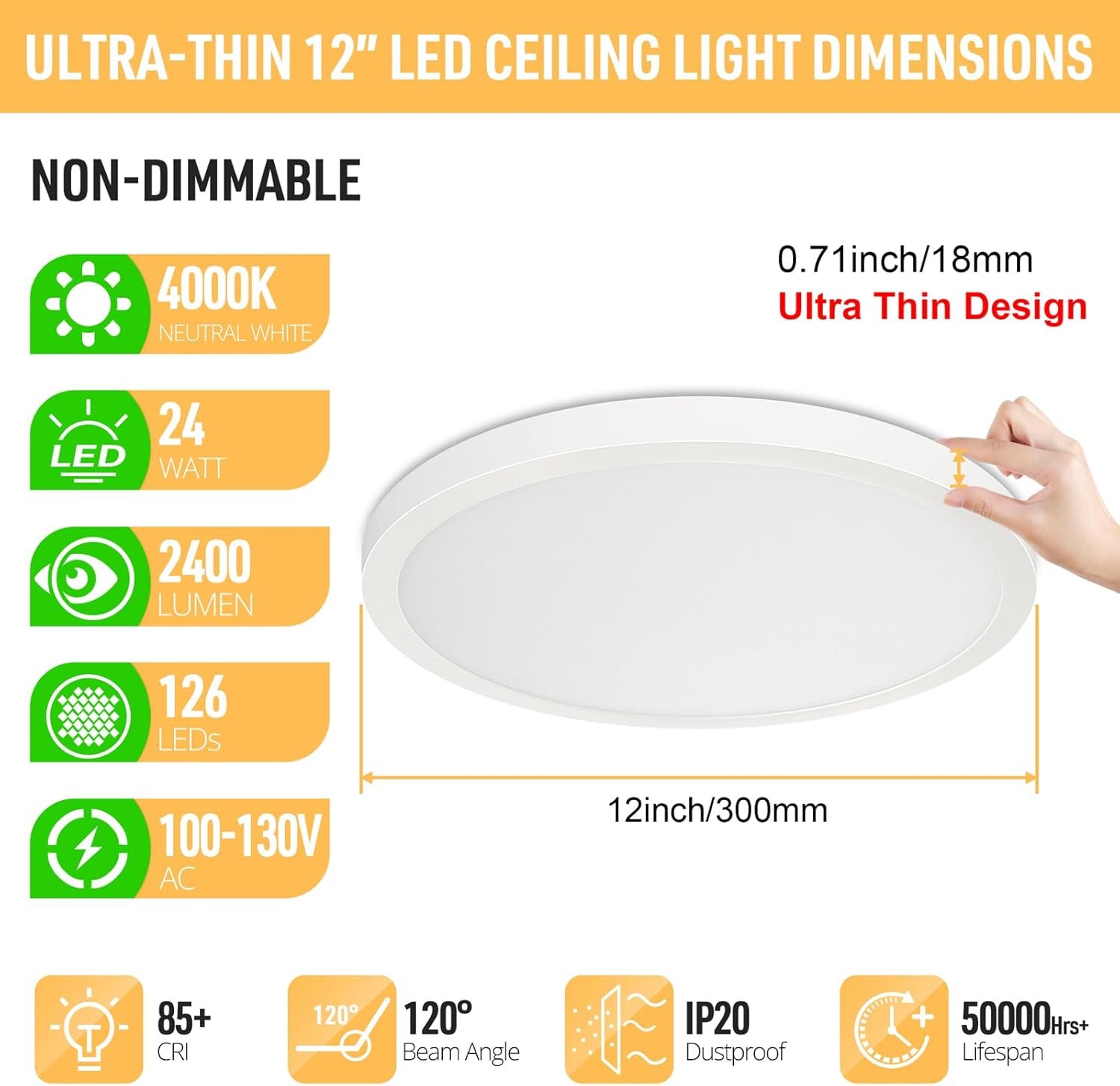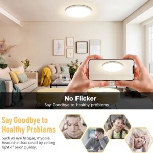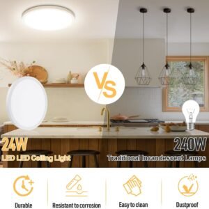 Blanco neutro y diseño ultradelgado: lámpara de techo LED empotrada mejorada con color blanco neutro de 4000 K, no regulable, compatible con la mayoría de las áreas domésticas y comerciales. La lámpara de techo LED de 30,5 cm de diámetro mide solo 1,8 cm de grosor. Es ideal para pasillos, baños, cocinas, armarios, escaleras, dormitorios, salas de estar, corredores, entradas, porches, vestíbulos, habitaciones infantiles, comedores, bares, cafeterías, oficinas, hoteles y restaurantes. Sin parpadeo y seguro de usar: la carcasa de plástico resistente al fuego, evita cualquier riesgo potencial de descarga eléctrica, fugas eléctricas y cortocircuitos eléctricos. El panel de luz está hecho de materiales avanzados no tóxicos, es fácil de limpiar, a prueba de polvo, resistente a la corrosión y más duradero y seguro de usar. Alto brillo y ahorro de energía: la lámpara de techo LED empotrada cuenta con la última tecnología LED avanzada con 135 cuentas LED integradas, sin necesidad de instalar bombillas. Las lámparas de techo LED emiten más de 2400 lúmenes de brillo utilizando solo 24 W, lo que es equivalente a una luz incandescente de 240 W, un excelente reemplazo de las bombillas tradicionales. Ahorra hasta un 90% de energía y reduce la factura de electricidad. Alto CRI y larga vida útil: la iluminación redonda de techo de 24 W emite 2400 lúmenes de brillo con más de 85 CRI (índice de reproducción cromática), lo que te da una experiencia extraordinaria, brillante y cómoda y un efecto de iluminación vívido en lugares oscuros. Disfruta de una hermosa luz y colores naturales. Bajo el uso normal de 8 horas por día, la vida útil podría durar más de 3 años. Instalación conveniente y no te preocupes por comprar: la iluminación de techo empotrada es fácil de instalar. Ya no te confundirás con esos tediosos pasos de instalación. Está diseñado con una placa de montaje giratoria en la base de la lámpara de techo que le permite completar la instalación de manera simple y rápida.