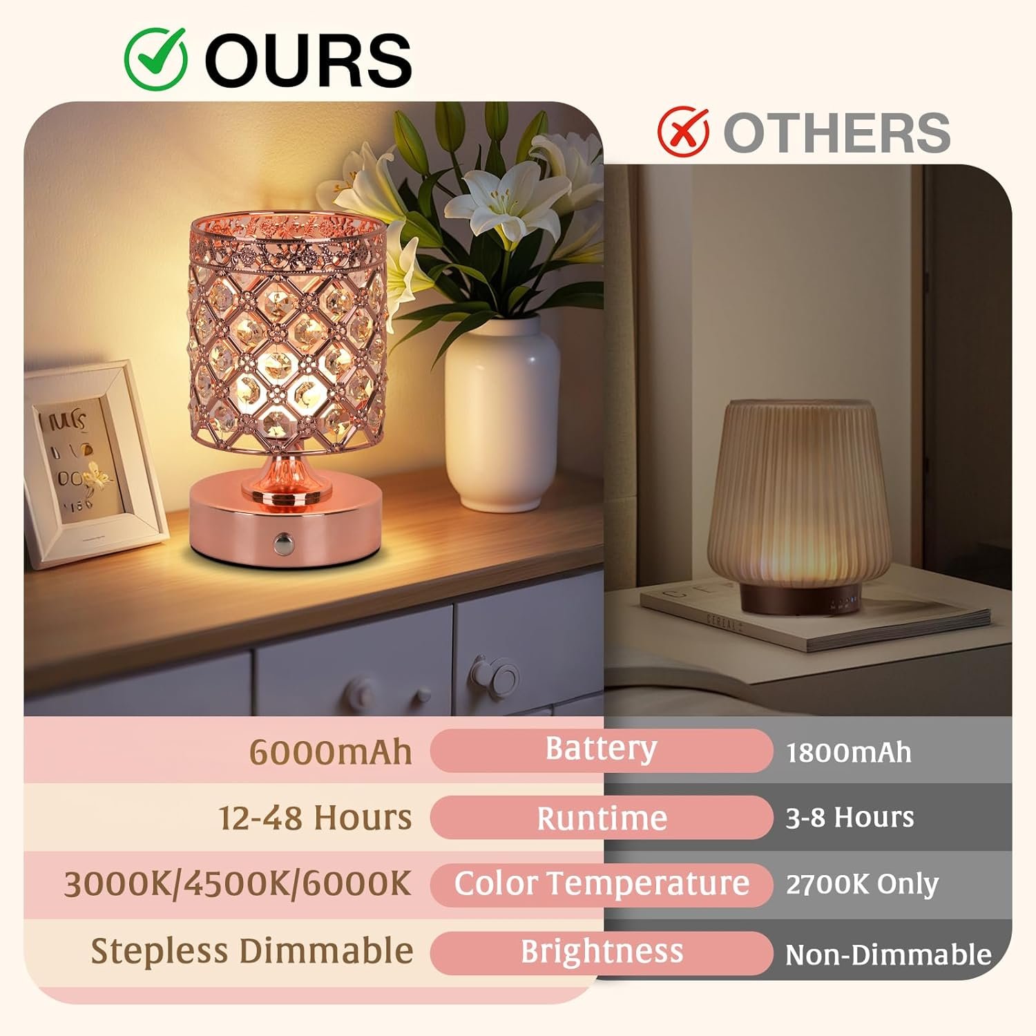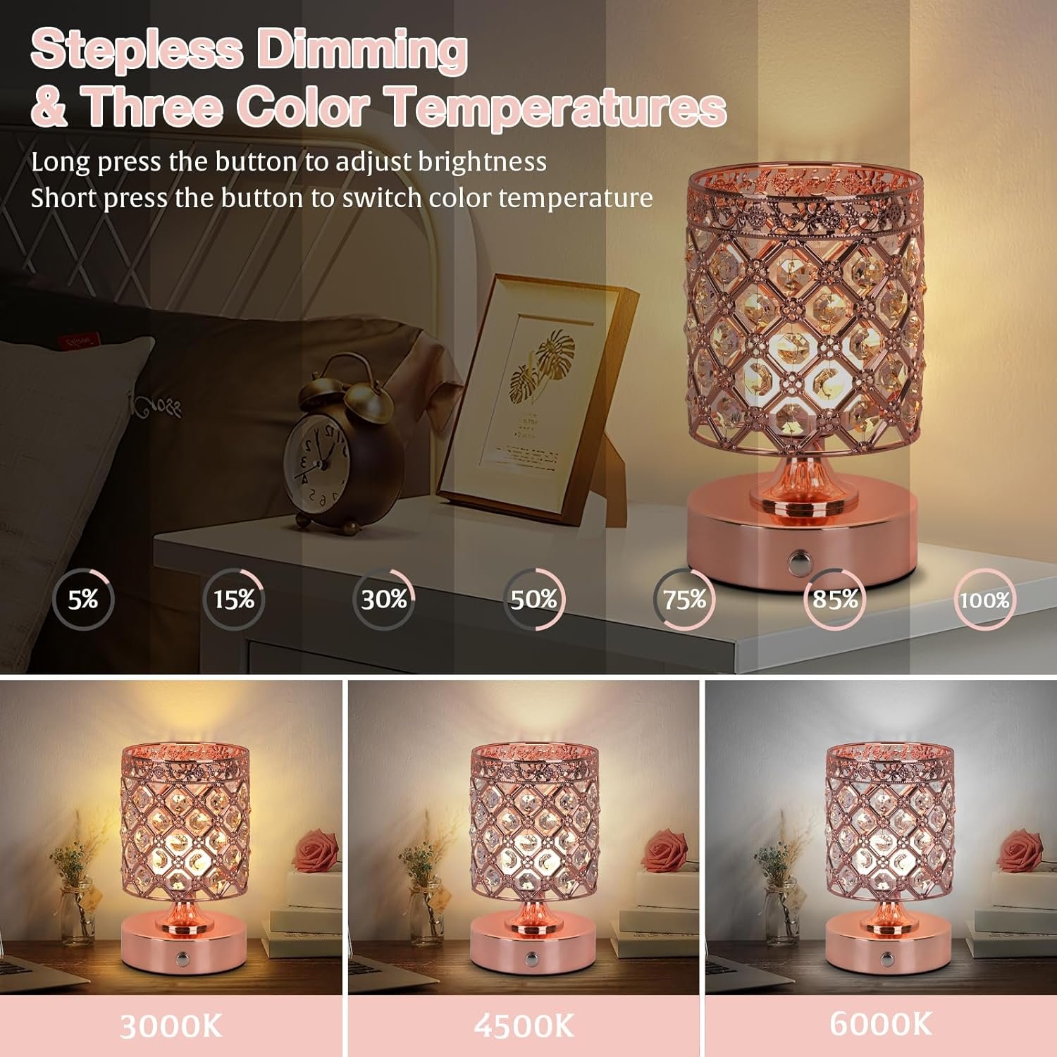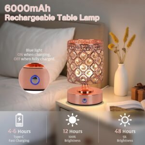 Lámpara de mesa recargable de 6000 mAh: con una batería de alta capacidad de 6000 mAh y cuentas LED integradas de bajo consumo, esta lámpara de mesa alimentada por batería no requiere reemplazo. Una carga rápida USB-C de 4 a 6 horas ofrece hasta 12 horas de brillo brillante y completo o más de 48 horas en un ajuste bajo del 5%. Di adiós a la carga constante. Es el compañero verdaderamente inalámbrico y confiable para tus noches. Siempre listo. (Nota: Para empezar, recomendamos una carga completa; cable tipo C está incluido) 3000K/4000K/5000K Cambio de 3 colores: alterna sin esfuerzo entre 3 temperaturas de color con un simple toque de botón en la base. Experimenta el suave abrazo de la luz blanca cálida de 3000 K para una relajación acogedora, la claridad del blanco natural de 4500 K para tareas enfocadas y el vigorizante blanco frío de 6000 K para una máxima productividad. Esta lámpara de mesa táctil entiende tus necesidades, ofreciendo la iluminación perfecta para que coincida con tu estado de ánimo y actividad durante todo el día. (Nota: El control táctil está dedicado solo al interruptor) 5%-100% atenuación continua: desliza tu dedo y mira cómo la luz responde como una respiración suave, desde un brillo iluminado por la luna al 5% para los momentos de medianoche hasta un resplandor 100% iluminado por el sol para un trabajo enfocado. Esta atenuación perfecta baila al tacto, envolviendo tu espacio exactamente con la luz que necesitas, cuando lo necesites. Además, estas lámparas de mesa inteligentes regulables incluso recuerdan tu brillo preferido para cada temperatura de color. Pensado y adaptable. Lámpara de escritorio pequeña portátil y opción de regalo perfecta: ¡mete esta mini lámpara de mesa inalámbrica de 27,9 cm en cualquier lugar! Es tu sueño minimalista hecho realidad, lo suficientemente pequeño como para un escritorio lleno de gente, lo suficientemente elegante para tu mesita de noche. Más que una luz, también es un regalo considerado. Elegante pero práctico, compacto pero potente, es la elección perfecta para inauguraciones de la casa, cumpleaños o cualquier ocasión que valga la pena celebrar. Cualquiera apreciaría su hermoso diseño y características reflexivas. Lámpara táctil de cristal moderna: hecha completamente de metal duradero, esta lámpara de mesa de cristal de oro rosa vintage está diseñada para un uso duradero. Su cuerpo está delicadamente adornado con cristales K9 de primera calidad, que mejoran la luz con un efecto brillantemente deslumbrante. La pantalla de oro rosa cuenta con hermosos patrones florales vintage impresos, añadiendo un toque de elegancia atemporal. Un simple toque enciende el LED cálido y integrado, y su base estable y antideslizante se mantiene firme en su lugar. Duradero, hermoso y práctico. Sin configuración y usos infinitos: conozca esta lámpara de mesa inalámbrica todo en uno que funciona donde trabaja, o relajarse. Sin montaje, sin cables, es hermosa de una sola pieza y lista para usar. Lleva su cálido brillo desde tu rincón de lectura a una cena acogedora, o incluso llévalo contigo cuando viajes. Ilumina tu dormitorio, añade calidez a tu sala de estar o empaca para viajes, cafeterías, restaurantes y noches altas en la oficina. Estilo y viaje ligero contigo, solo recuerda, no es impermeable. Nos preocupamos por ti: respaldados por años de experiencia y un equipo de desarrollo dedicado, respaldamos cada producto que creamos. Cada lámpara de mesa funciona con pilas se somete a rigurosas pruebas antes de salir de nuestras instalaciones, asegurando que cada lámpara de escritorio inalámbrica llegue en perfectas condiciones y lista para enriquecer tu espacio. Si surge alguna pregunta, siempre estamos aquí para ayudar.