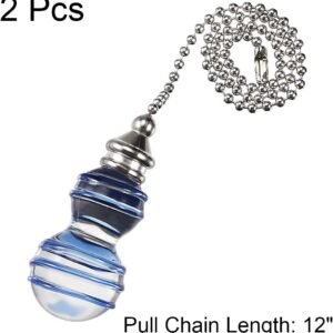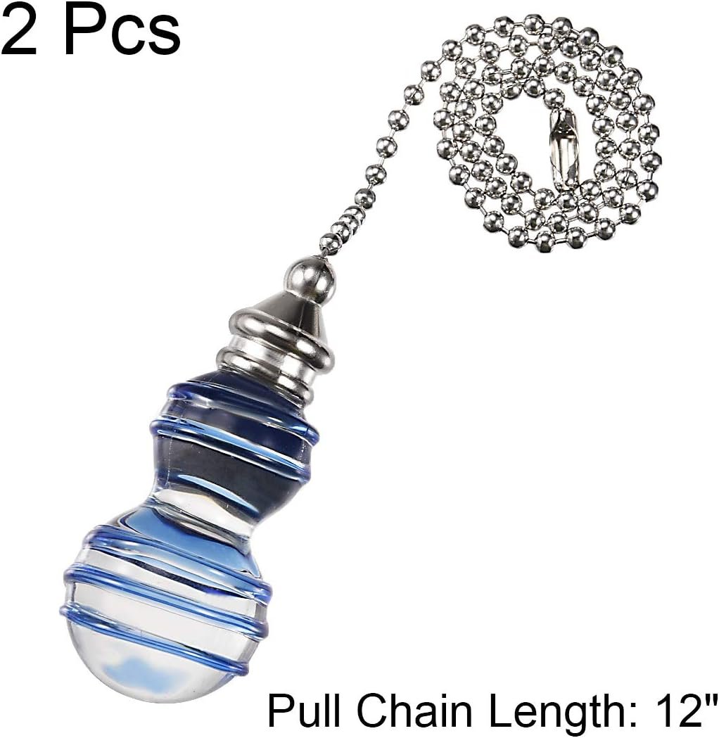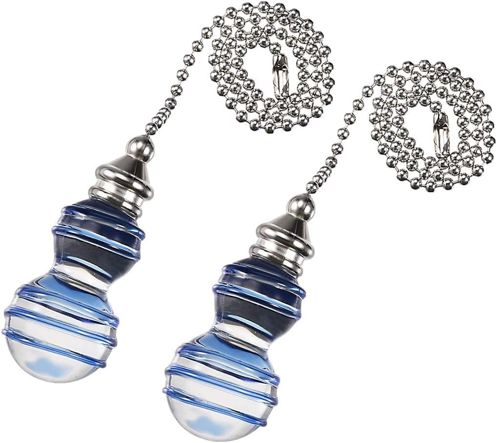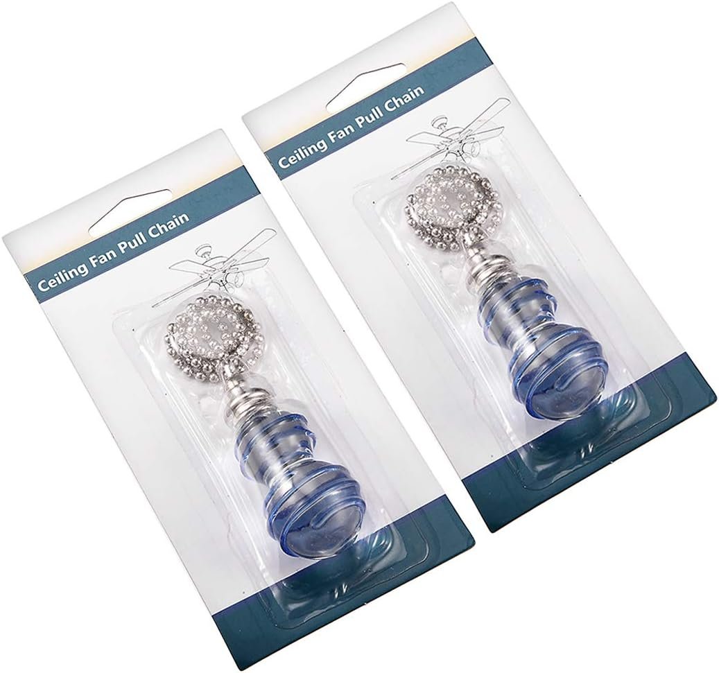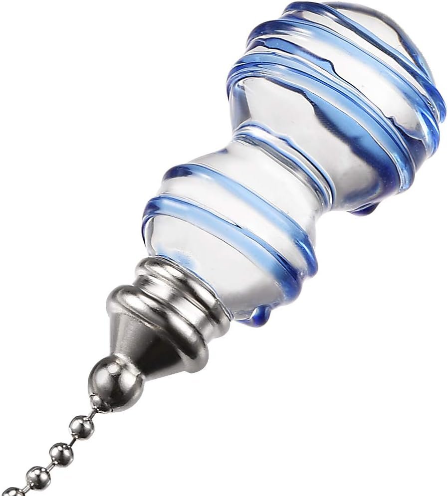 Cadena decorativa. Cadena de tono plateado de 30,5 cm, perilla de cristal transparente y azul. Reemplazo para cadena de tracción rota u obsoleta. Se utiliza para iluminación, ventiladores, ventiladores de techo, ventilación, etc. Puedes fijarlo fácilmente a la cadena existente desde tu iluminación o ventilador.