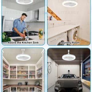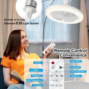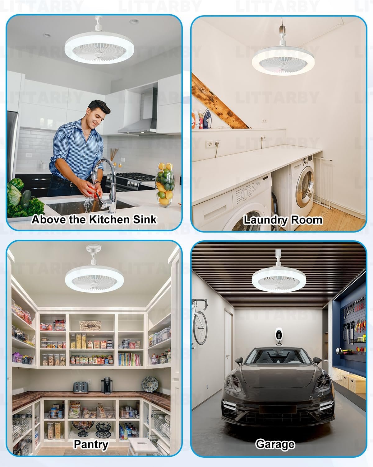 Ventilador de techo sin cableado, fácil instalación: literalmente simplemente se atornilla en el enchufe de la bombilla, compatible con cualquier enchufe de luz base estándar E26/E27. Menos de un minuto de tornillo en ventilador y combinación de luz, puedes disfrutar de luz brillante y viento fresco. Mini ventilador de techo utilizado en múltiples escenarios El diseño cerrado del ventilador hace que sea una opción segura para hogares con niños pequeños o mascotas. Nuestro pequeño ventilador de techo de 25,4 cm con luz disponible en negro y blanco, diseño compacto y moderno hace que se adapte a la mayoría de espacios pequeños, como cocina, despensa, ático, garaje, lavandería, pasillo, baño, armario de ropa, dormitorio, perrera, jaula de perro, cobertizos pequeños, etc. Comodidad de control remoto: luz de ventilador con control remoto, controla 3 velocidades del ventilador y 3 ajustes de temperatura de color con brillo ajustable. El control remoto también te permite encender y apagar: solo las luces, solo el ventilador, tanto la luz como el ventilador. Ventilador de techo pequeño con luz. Se adapta a cualquier necesidad, ahorro de energía Este pequeño ventilador de techo se atornilla en el enchufe de luz tiene rotación pivotante, para ajustar los ángulos del ventilador de la bombilla. Brillo ajustable, ventilador de enchufe de luz de temperatura de color, proporciona un funcionamiento silencioso, circulación de aire efectiva para el espacio. La pequeña lámpara hace una gran comodidad para tu vida. Compra sin complicaciones: el ventilador de techo Littarby sigue un estricto control de calidad. Cualquier problema de calidad dentro de 1 año, le reembolsaremos en consecuencia o le enviaremos el reemplazo lo antes posible.