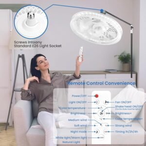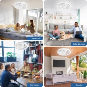 Ventilador de techo multifuncional con iluminación La intensidad de luz de este ventilador de techo se puede ajustar de acuerdo a tus necesidades, y hay tres temperaturas de color para elegir: cálido, fresco y luz diurna. El brillo varía de tenue a brillante, con una pantalla de policarbonato de diamante translúcido que difunde uniformemente la luz sin deslumbramiento, por lo que es perfecta para crear un ambiente de cena, mejorar la eficiencia del trabajo o relajarse antes de acostarse. Ventilador de techo sin cableado, fácil instalación Sin cableado, no se requieren electricistas, simplemente se atornilla en el casquillo de la bombilla, compatible con cualquier portalámparas estándar E26/E27. La base E26 extendida de 10,2 cm permite que el ventilador de luz de zócalo se instale en cualquier lugar donde necesites un ventilador rápido. Instala el ventilador y la combinación de luz en menos de un minuto, y podrás disfrutar de luces brillantes y viento fresco. Cualquiera puede ahorrar el costoso costo de contratar a un electricista. Operación ultra silenciosa Este moderno ventilador de techo con luz está diseñado para personas que duermen poco, brindándote un ambiente de sueño silencioso y cómodo para mantenerte fresco y cómodo durante todo el año. El volumen del ventilador es tan bajo como 30 decibelios cuando está en funcionamiento, y las aspas están equilibradas de fábrica y probadas con sonido para evitar vibraciones. Esto asegura que el ventilador funcione silenciosamente, lo que es más adecuado para familias con bebés o ancianos. Control remoto, función de memoria Este ventilador de techo empotrado tipo enchufe moderno tiene una función de memoria y una función de temporizador (opción de 2/4 horas). el ventilador y la iluminación se pueden operar simultáneamente o por separado. Su diseño inalámbrico se combina con un control remoto, que es conveniente y hermoso. Ampliamente adecuado para múltiples escenas : nuestro pequeño ventilador de techo con luz y control remoto adopta un diseño compacto y moderno, lo que hace que este ventilador de bombilla con control remoto sea adecuado para la mayoría de espacios pequeños, como cocina, dormitorio, oficina, estudio, trastero, ático, garaje, lavandería, pasillo, baño, armario, perrera, cobertizo pequeño, etc. Servicio sin preocupaciones Te proporcionaremos un servicio de alta calidad, puedes comprar con tranquilidad. Y si tienes alguna pregunta, no dudes en ponerte en contacto con nosotros. (por ejemplo: no se puede usar, rotura del paquete, etc. ) Definitivamente le daremos una solución satisfactoria, y resolveremos el problema para usted lo antes posible. ¡Muchas gracias por sus valiosos comentarios! Haremos todo lo posible para proporcionar a los clientes la experiencia de compra más satisfactoria. ¡Bienvenidos a visitarnos de nuevo!