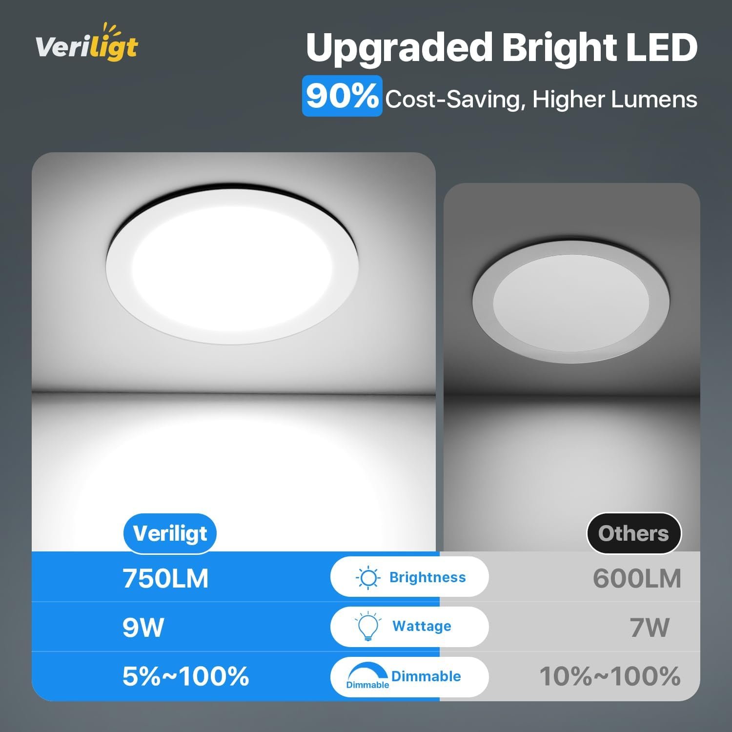 Veriligt Paquete de 12 luces LED empotradas de 4 pulgadas, 5