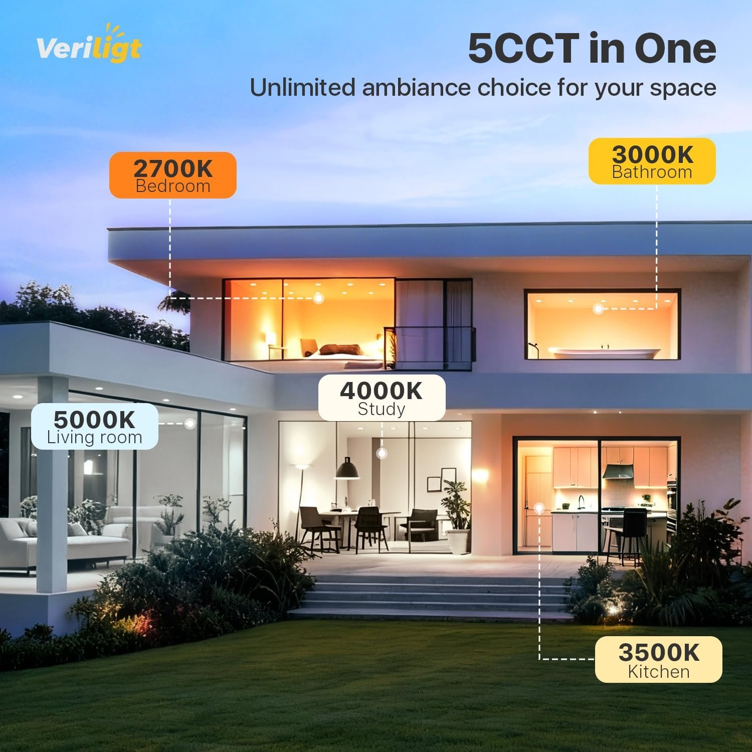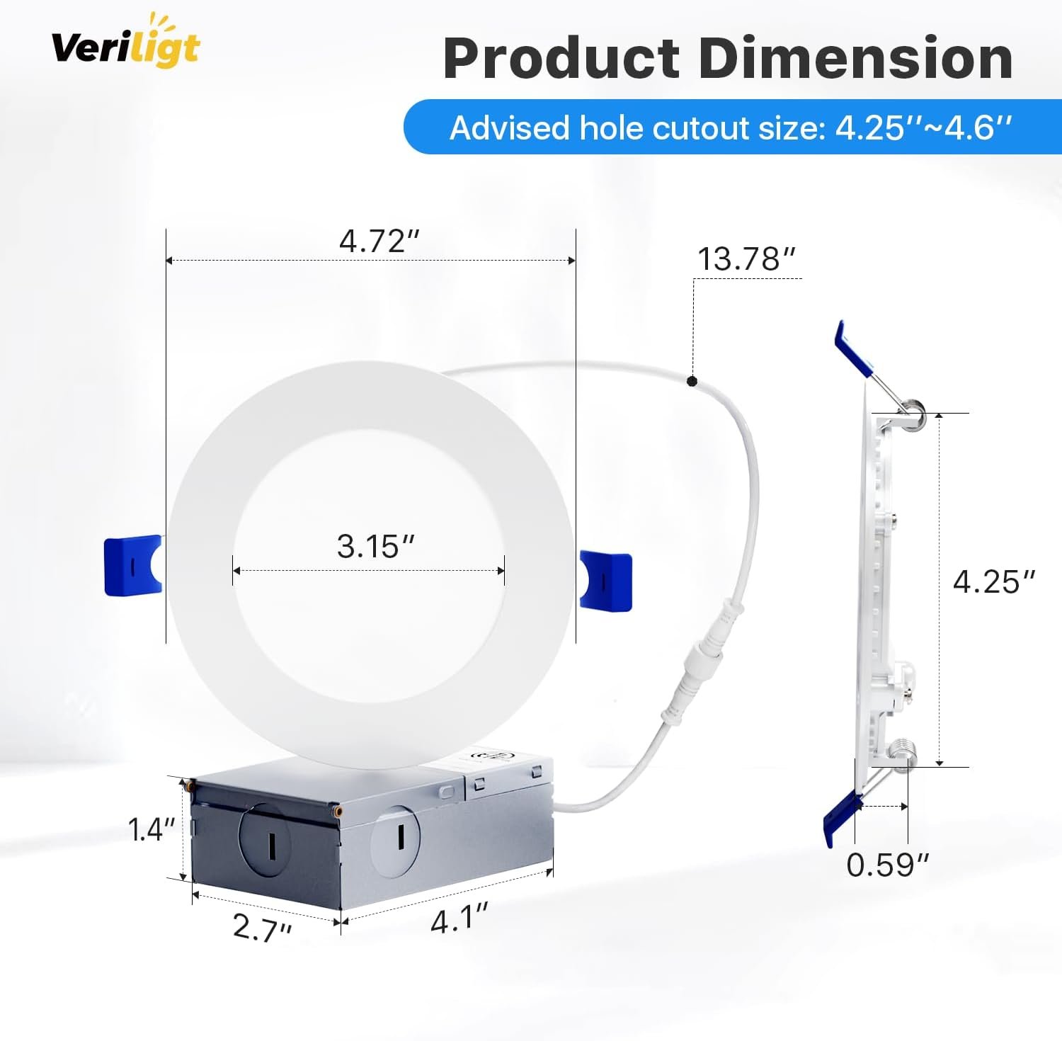 5CCT Regulable – La luz empotrada de 10,2 cm Veriligt ofrece 5 temperaturas de color y admite atenuación del 5% al 100%. Un suave brillo cálido (2700K 3500K) te ofrece un acogedor dormitorio por la noche. La iluminación ideal de 4000K mejora tu experiencia en la cocina, haciendo que cocinar sea más agradable. Con una luz diurna 100% de 5000K, la sala de estar brinda más energía por la mañana. Define tus habitaciones y tu estado de ánimo con la luz 5CCT. Clasificación IC – La luz empotrada LED de Veriligt tiene clasificación IC, certificación ETL y Energy Star. La caja bien empacada asegura que su iluminación esté protegida desde la entrega. El cuerpo de aluminio elimina los posibles riesgos de incendio de las cajas de conexiones. El contacto directo con materiales de aislamiento es seguro. Brillo verde: alimentada por chips LED líderes en el mundo, esta luz de oblea delgada de 10,2 cm produce 750 lúmenes utilizando solo 9 W, lo que equivale a una bombilla halógena de 75 W, reduciendo casi el 90% de desperdicio de energía y costos de electricidad. Una inversión sostenible para tu hogar y tus facturas. Instalación fácil – Esta iluminación empotrada sin candelabro de 10,2 cm está diseñada para modernización y proyectos nuevos: corta un agujero con una plantilla de agujero 1:1, conecta la caja al cable, empuja la luz hacia el techo. Es compatible con vigas y tiene clasificación de humedad. Se puede instalar debajo de la vigueta o encima de la ducha. Beneficios de Veriligt – La iluminación empotrada de Veriligt está certificada por ETL que cumple con los más altos estándares. Una vida útil de más de 50.000 horas asegura menos devoluciones y más comodidad. Nuestro equipo profesional de atención al cliente abordará sus inquietudes en 12 horas.