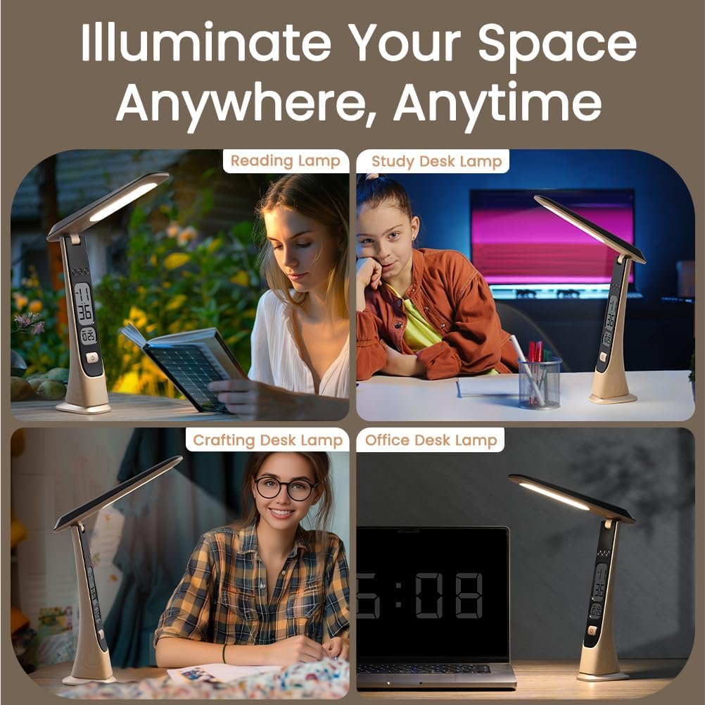 Iluminación versátil: esta lámpara de escritorio proporciona una amplia iluminación para su espacio de trabajo, por lo que es perfecta para leer, escribir o cualquier tarea que requiera iluminación enfocada. Diseño ajustable: con un brazo flexible de cuello de cisne, puedes ajustar fácilmente la posición de la lámpara para dirigir la luz exactamente donde la necesites. Eficiencia energética: Con una bombilla LED, esta lámpara ofrece una iluminación duradera y eficiente energéticamente, lo que le ayuda a ahorrar en costos de electricidad. Tamaño compacto: su diseño compacto le permite caber perfectamente en escritorios, mesas o estantes sin ocupar demasiado espacio. Construcción robusta: construida con materiales duraderos, esta lámpara de escritorio está diseñada para soportar el uso regular y proporcionar una iluminación confiable durante años.