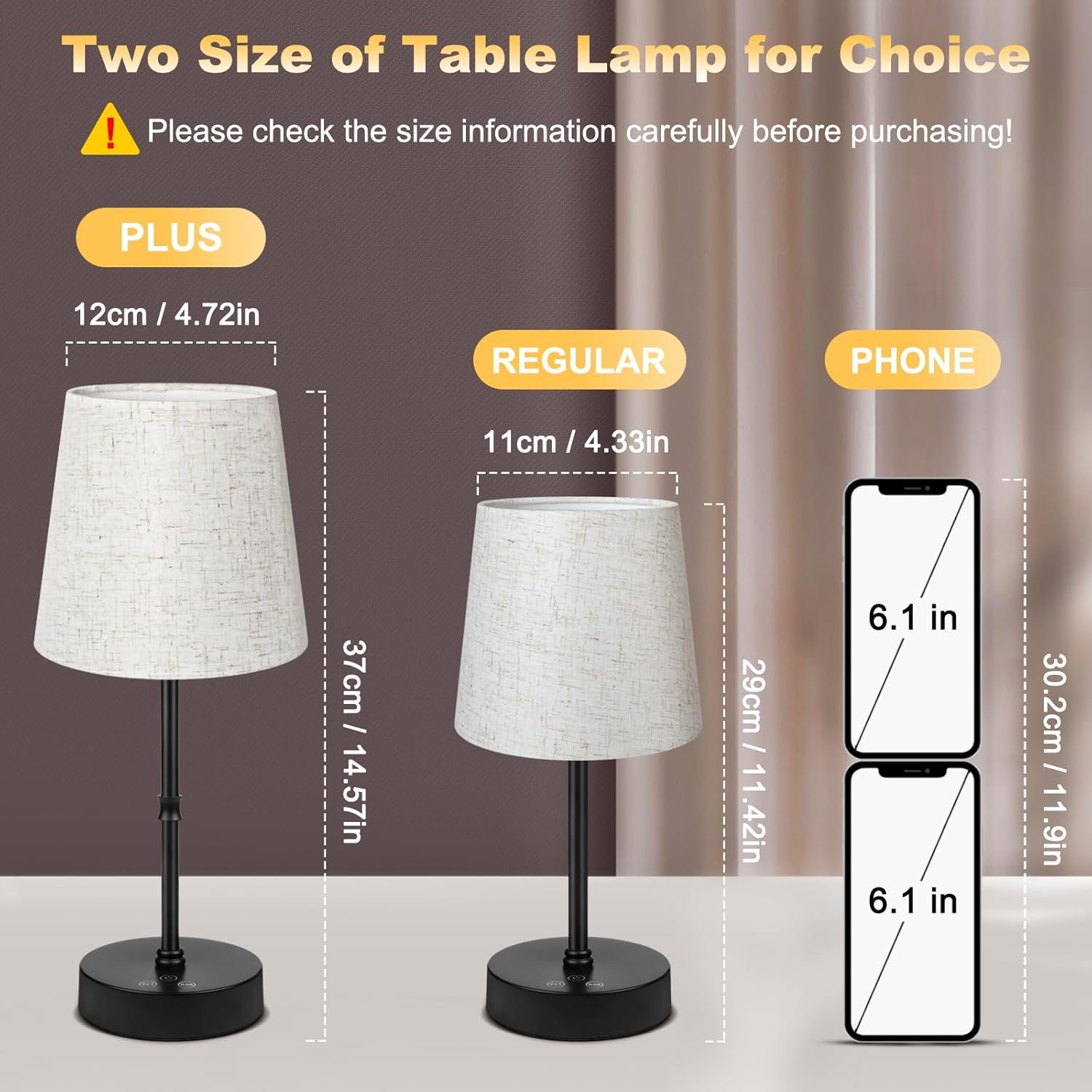 Diseño portátil y sin cables: Mini encarna la portabilidad, sin molestias de torsión de cables, colócalo sobre la mesa sin ocupar espacio visual. Es ligero y fácil de agarrar, puedes colocar las lámparas de mesa inalámbricas en cualquier lugar Lámpara Operada por Batería Recargable: Batería recargable integrada de alta calidad de 5000 mAh, que puede ser utilizada durante 8-100 horas cuando está completamente cargada (en diferentes configuraciones de brillo). Acompáñate sin esfuerzo de habitación en habitación. Incluso se puede utilizar como una luz de emergencia en caso de un corte de energía Regulable continuo de 3 colores: mejora tu experiencia de iluminación con nuestra lámpara de escritorio con control táctil. Pulsa brevemente para alternar entre 3 modos de iluminación diferentes: 3000 K blanco cálido/4500 K blanco neutro/blanco frío 6500K. Presiona prolongadamente para controlar el brillo de la luz (10%-100%). Liviana y portátil, adecuada para iluminación de dormitorio/reuniones familiares/cenas y otros lugares para crear un ambiente romántico para ti Luz RGB de 7 colores: la lámpara de mesa alimentada por batería está disponible con 7 colores diferentes de luz, presiona brevemente para cambiar los colores. Presiona largamente para el modo de ciclo RGB: cambio automático de colores (El modo RGB también puede ser regulable en intensidad). Esta lámpara de mesa puede satisfacer tus necesidades de iluminación diaria, así como la iluminación de ambiente para fiestas, creando un ambiente inmersivo que se adapta a tu situación y necesidades Diseño minimalista: el material general es de metal de alta calidad con proceso de recubrimiento mate. Resistente a los arañazos. El diseño antideslizante inferior utiliza silicona suave para evitar que la parte inferior se deslice. Fuente de luz LED integrada sin parpadeos. Pantalla de tela elegante, buena transmisión de luz y no cegadora que puede proteger tus ojos, creando una sensación cálida y acogedora para tu hogar Portátil y tamaño pequeño: Esta lámpara de mesa mide solo 11.42in/29cm. Por favor, comprueba la información de tallas cuidadosamente antes de comprar