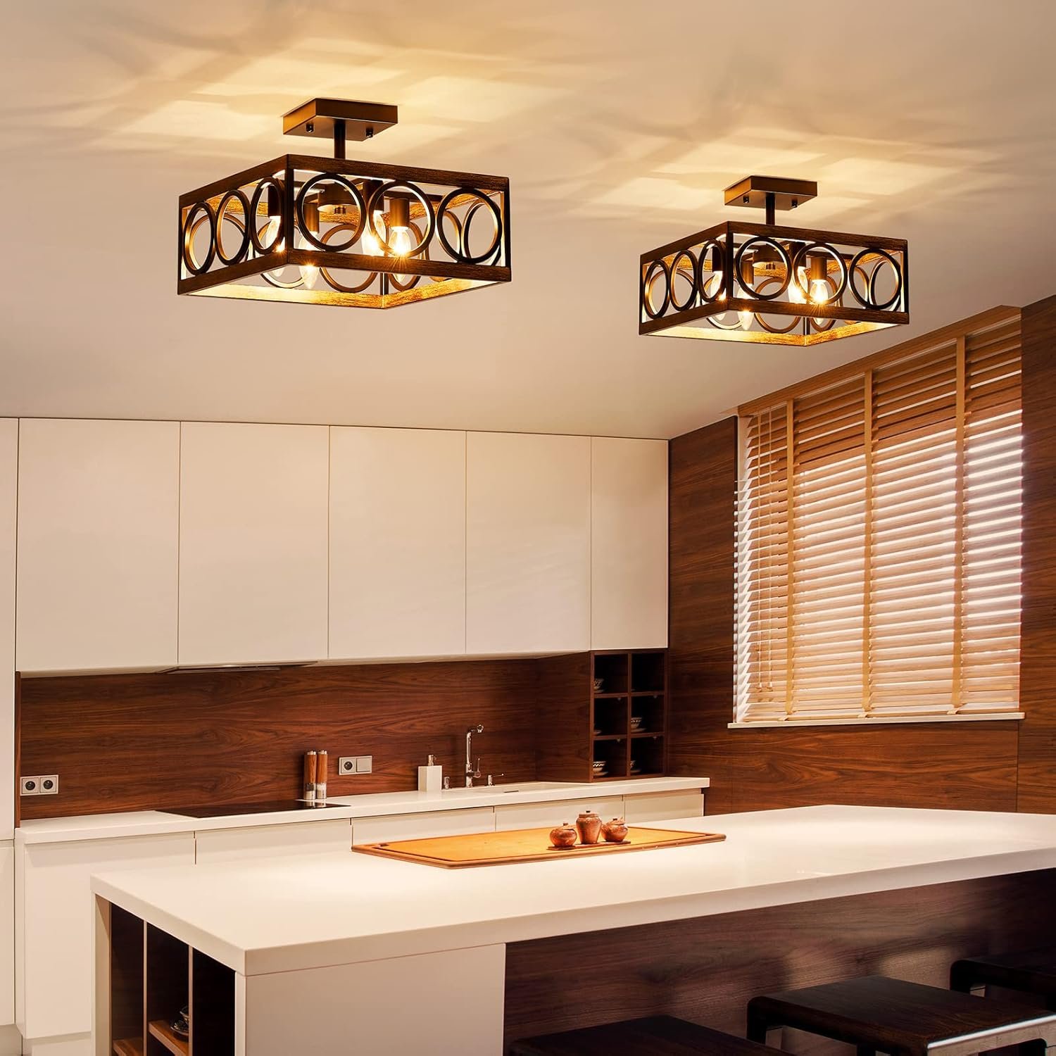 XINGQI Lámpara de techo rústica semiempotrada de 13 pulgadas