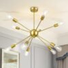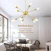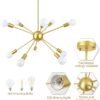 Diseño moderno: este moderno candelabro Sputnik adopta un diseño giratorio flexible y un cuerpo de metal sólido. Con su llamativa forma de estrella añade energía y estilo a tu espacio. Altura ajustable: la lámpara colgante de metal viene con 4 barras de extensión. Cada barra mide 25,0 cm de largo. La altura es ajustable para satisfacer tus diferentes necesidades, y el candelabro es compatible con techos inclinados/planos. Estas 10 luces son perfectas para la iluminación de la casa y hacen que tu espacio sea más cómodo y brillante. Bombillas E26 ampliamente aplicables Esta lámpara es compatible con bombillas LED, CFL, halógenas o incandescentes de 60 vatios o menos (bombillas no incluidas). Recomendamos bombillas Edison que aportan a tu habitación un clima de inspiración vintage. También funciona bajo un interruptor de atenuación y una bombilla de atenuación (interruptor no incluido). Es adecuado para el comedor, dormitorio, sala de estar, habitación de los niños, oficina y otros lugares. Fácil de instalar: los brazos de las luces colgantes modernas están precableados y precableados. Solo necesita atornillar la rama en la bola central con hilo y fijarla. Confirme la altura de la varilla de la lámpara de araña, pase el cable primario a través de barras de extensión y luego instale el accesorio en la caja del techo. Garantía sin preocupaciones Nuestro candelabro Sputnik proporciona una garantía de devolución de dinero de 90 días y una garantía de 3 meses. Si tienes alguna pregunta sobre nuestra lámpara de araña, no dudes en ponerte en contacto con nosotros. Estamos comprometidos a satisfacer sus necesidades. ¡También se proporcionarán respuestas rápidas y un servicio al cliente amigable!