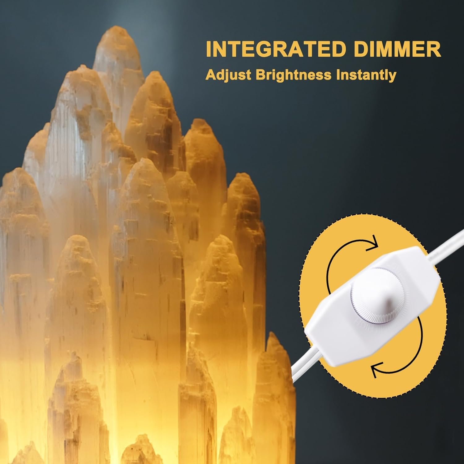 DESIGN DE SERENIDAD ILUMINADO POR LA LUNA | Elevar el estado de ánimo y la decoración Baña tu espacio con luz lunar marroquí hecha de 100% cristal de selenita crudo. Cada lámpara tallada a mano es una pieza de arte naturalmente única que transforma instantáneamente las habitaciones en santuarios de ensueño. Concentrador de energía autolimpiante | Purificación sin esfuerzo ¡Activa la limpieza de cristales a pedido! Sin rituales ni carga solo brilla para purificar la negatividad. Ideal para profundizar en yoga, meditación o proteger tu santuario del estrés. CONTROL DE BRILLO QUE AHORRA ESPACIO | Ambiente Personalizable Se adapta a cualquier lugar (26,0 cmx13,0 cm) ¡pero controla cualquier estado de ánimo! Incluye bombillas de brillo ajustable: atenuar para dormir, iluminar para leer. Vataje ultrabajo: ahorra energía mientras brilla 24/7 sin culpa. ENCHUFE Y BRILLA ZEN INSTANTÁNEO | Cero Complicaciones, Máxima Paz Conecta Respira. Sin botones, sin aplicaciones solo luz cálida sin esfuerzo que realza las vetas naturales del cristal. Convierte instantáneamente las esquinas en retiros de bienestar. HERENCIA EXCLUSIVA DE LA TIERRA | Arte irrepetible Posee un fragmento del alma de Marruecos. Selenita extraída de manera sostenible con las huellas dactilares de la naturaleza (formas/tonos orgánicos). Arte funcional que dura más que las tendencias para tu disfrute durante generaciones.