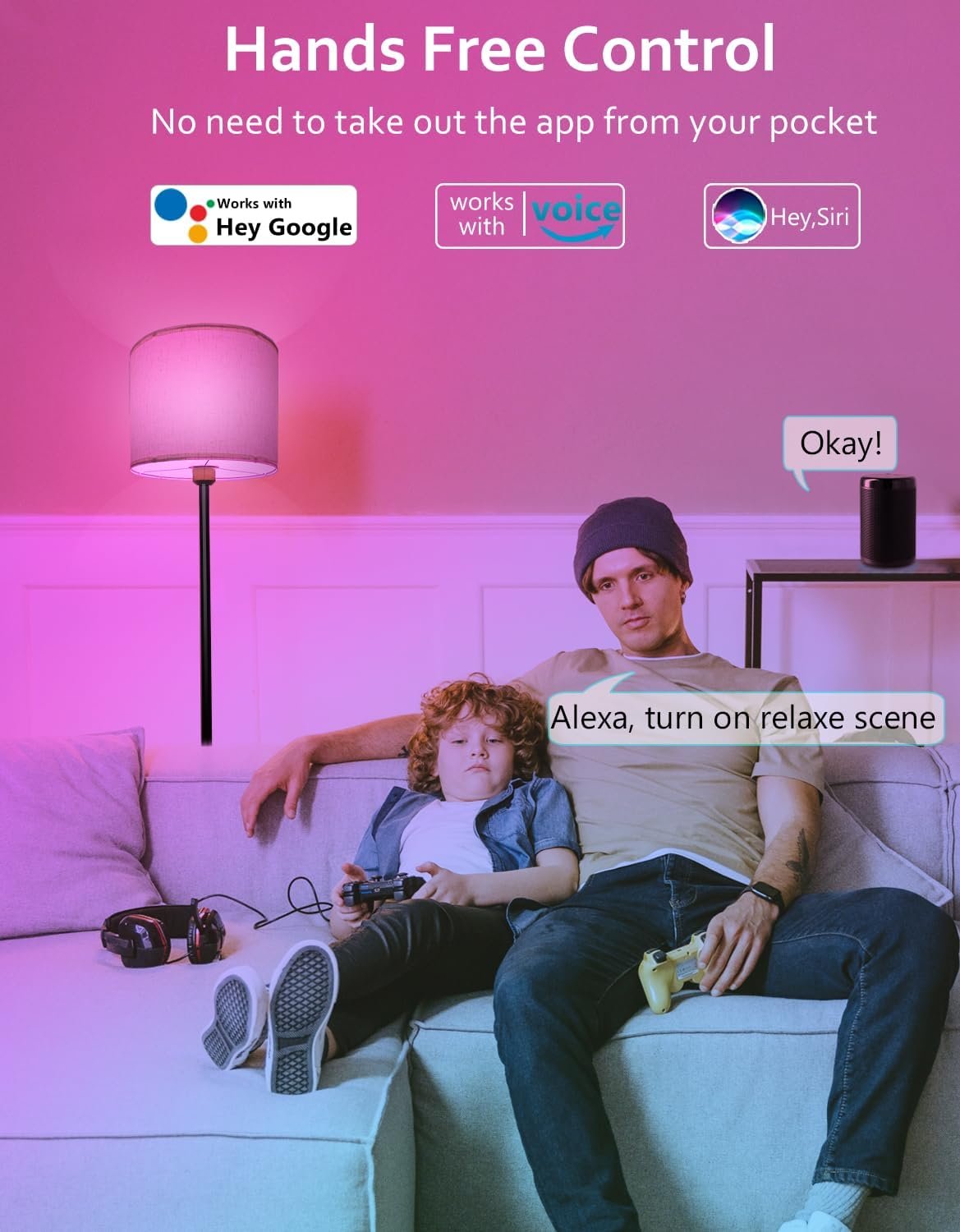 Características especiales: Cambio de color, Control de voz, Control remoto, Lámpara LED regulable