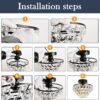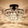 Lámpara para techo: 23,0 cm de alto y 25,0 cm de ancho. Cómoda iluminación: 110 V 40 vatios. Base del foco: E26. (*focos no incluidos *Necesitas obtener 1 conjunto de focos Led E26, dependiendo de los efectos de iluminación que desees. Diseño compacto: Cristales acrílicos brillantes que tienen un toque y una sensación de cristal, que hace que sean difíciles de romper y podrán crear una atmósfera superior y elegante en tu habitación. Fácil instalación: Requiere montaje pero es fácil de instalar, incluye colgar las cuerdas de cristal a la placa plateada y todos los accesorios de montaje así como un detallado manual de instrucciones de montaje. (idioma español no garantizado). – –