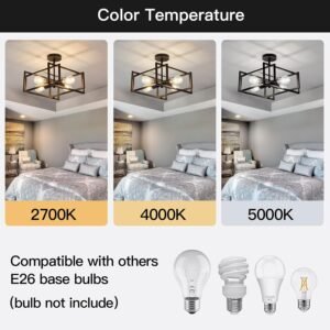 Escena de instalación: El estilo de iluminación vintage es adecuado para [espacio], pasillo, balcón, vestíbulo, dormitorio, pasillo, cocina. Tamaño de la lámpara: altura 31,0 cm, ancho 48,0 cm, ancho inferior 12,0 cm. Tipo de bombilla: Se recomienda usar bombilla (E26) con un máximo de 60W (por bombilla) (bombilla no incluida). Si necesita atenuación, puede comprar bombillas de atenuación y atenuadores. Lámpara de techo Sputnik Fácil instalación: necesita ensamblar una pequeña pieza, con dibujos de instalación detallados, si no entiende la instalación, lo resolveremos lo antes posible. Garantía posventa: valoramos la experiencia del cliente, si tienes alguna pregunta, garantía posventa: valoramos la experiencia del cliente, si tienes alguna pregunta, la resolveremos lo antes posible