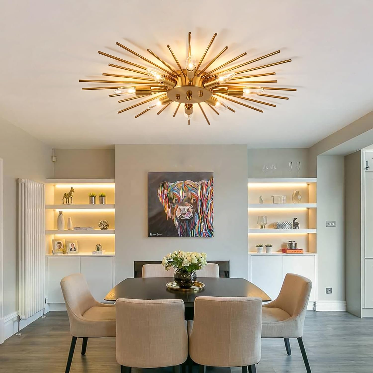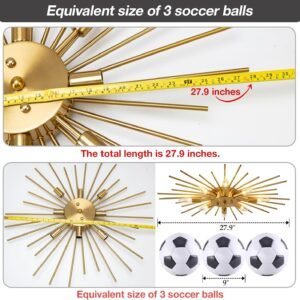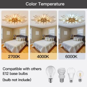 LÁMPARA DE TECHO DE LATÓN PEGADA AL TECHO TAMAÑO: altura 7,0 cm * ancho 71,0 cm, ancho de la base 15,0 cm. Tipo de bombilla: bombilla LED E12 (bombilla no incluida), se pueden comprar bombillas y reguladores de intensidad. (Tenga en cuenta: la longitud máxima del accesorio es de aproximadamente 68,6 cm, y el accesorio debe montarse) DISEÑO DE LUZ DE TECHO SPUTNIK INDUSTREAL — Lámpara de araña semiempotrada con aspecto elegante y rústico, no solo una iluminación de casa de campo, sino también una hermosa decoración moderna. El diseño de montaje empotrado de los accesorios de techo para interiores crea un ambiente cómodo y moderno para tu casa. (Tenga en cuenta: la longitud máxima de la lámpara es de aproximadamente 68,6 cm, y la lámpara debe ensamblarse) APLICACIÓN DE LÁMPARA DE MONTAJE EMBUTIDO GRANDE –La lámpara estilo granja es adecuada para dormitorio, salón de belleza, comedor, sala de estar, sala de estudio, baño, estantería, pasillo, balcón, porche, cenador, etc. Instalación sencilla: se han instalado algunas lámparas, por seguridad, estamos empaquetadas a granel, necesitas montar una pieza pequeña. (Tenga en cuenta: la longitud máxima del accesorio es de aproximadamente 68,6 cm, y el accesorio debe montarse) Recordatorio cálido: Si tienes alguna pregunta, consulta el Servicio al Cliente de Amazon. Si hay algún problema con los productos que recibes, te ayudaremos