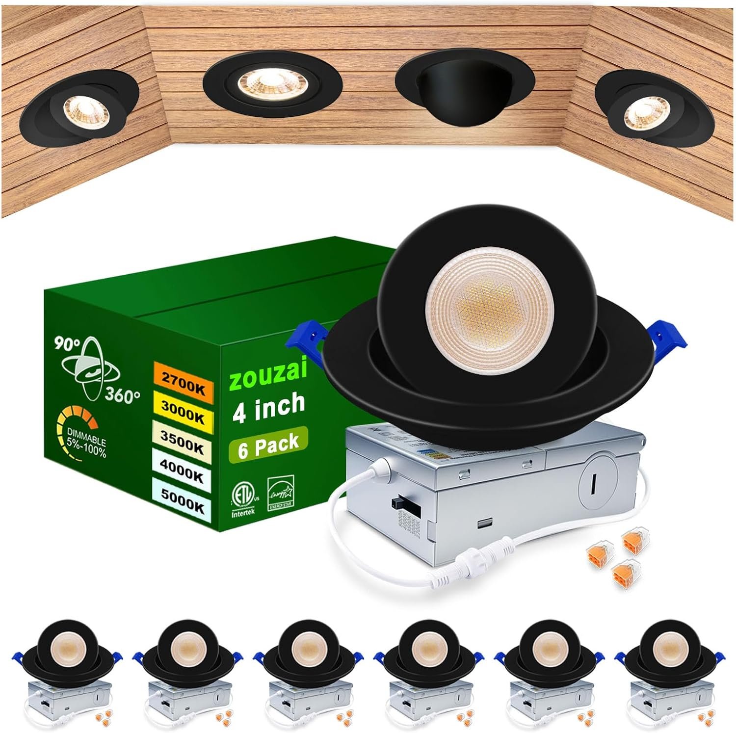 zouzai luces LED empotrables con cardán de 4″ de 5CCT