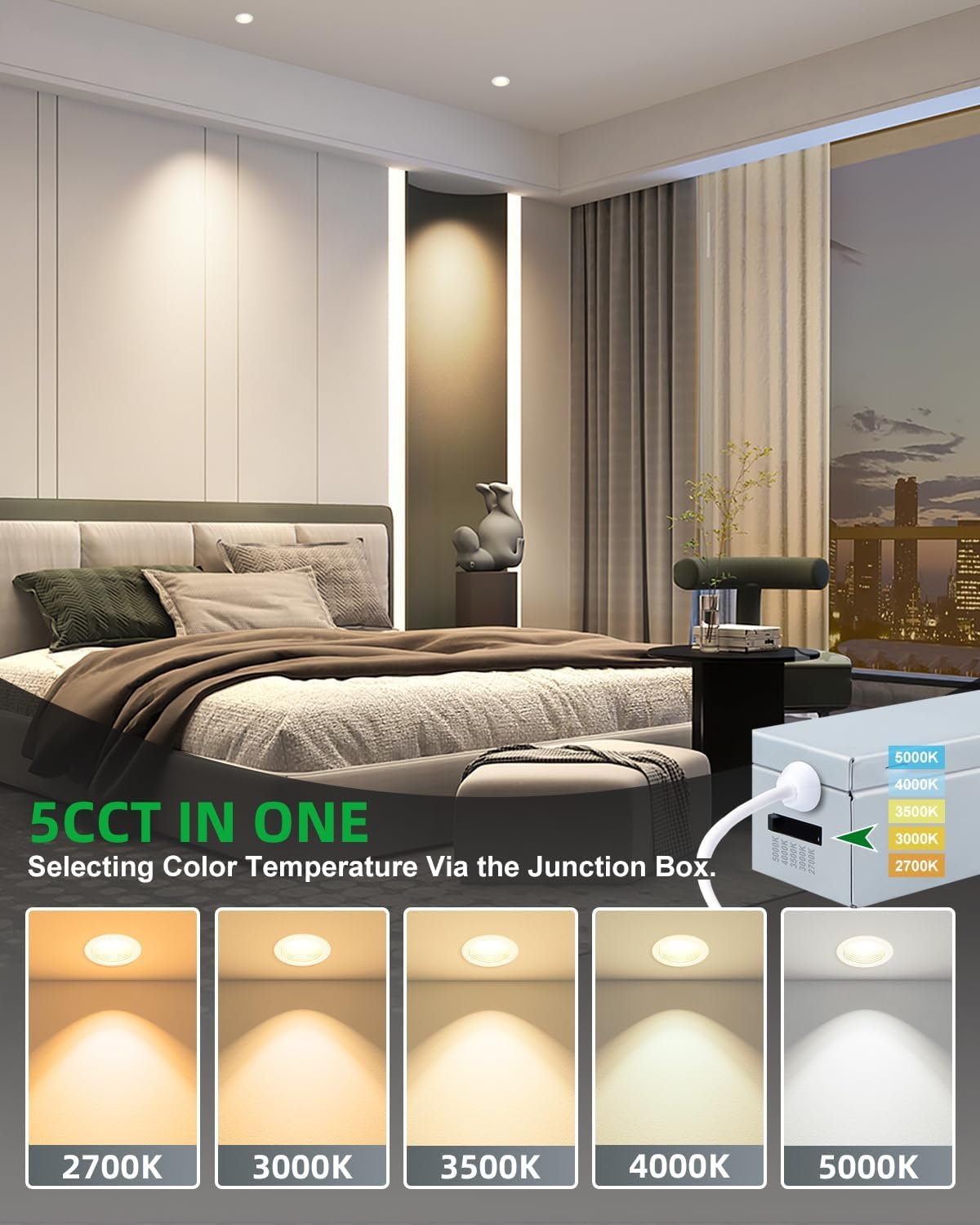 zouzai Paquete de 6 luces LED 5CCT de 2 pulgadas con caja de