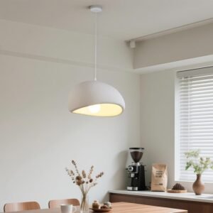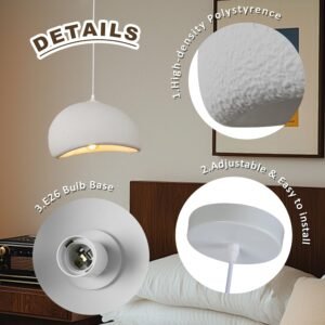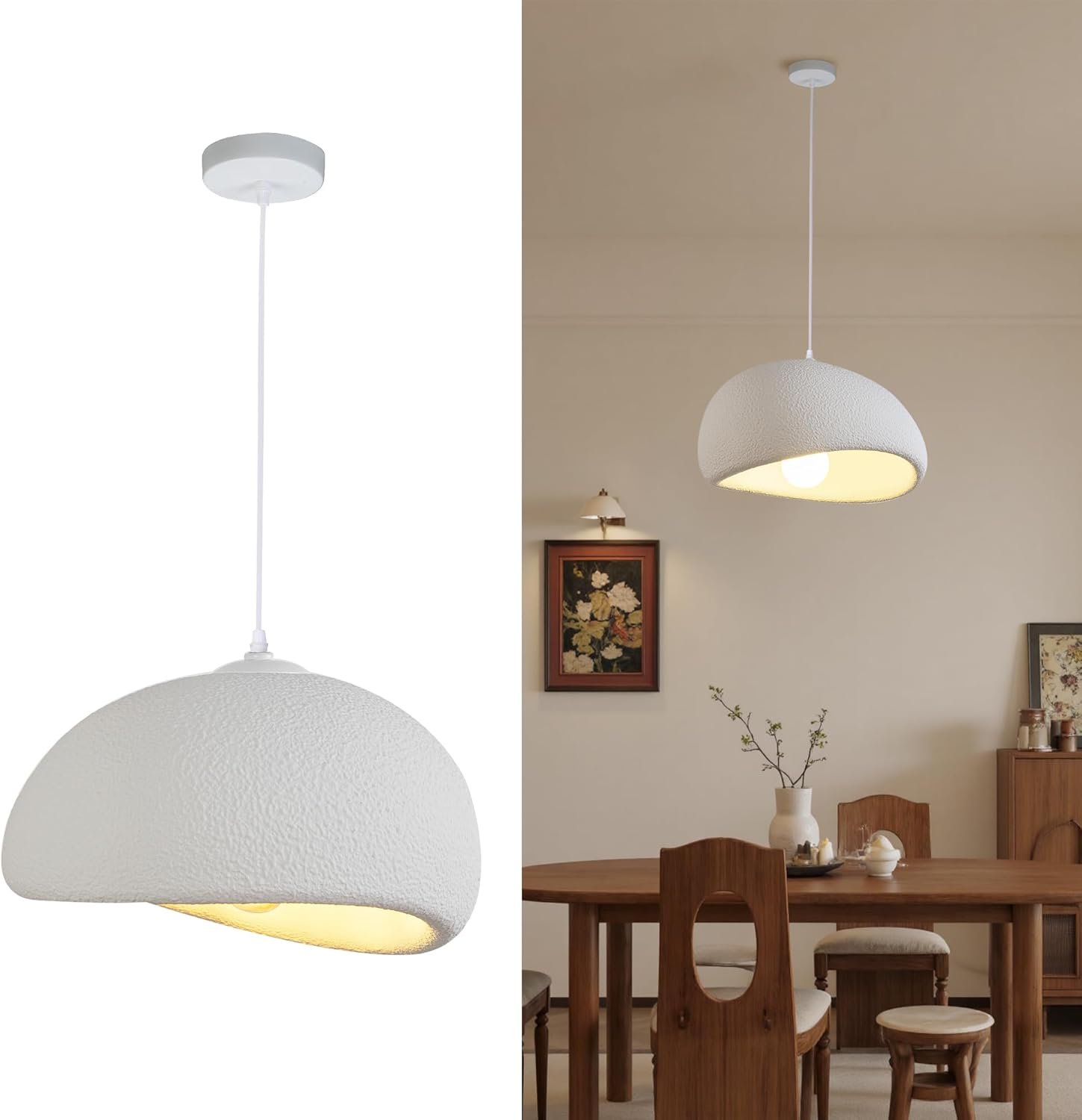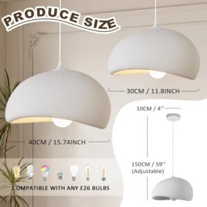 Unique Chandelier: High-density polystyrene lampshade, handcrafted, emphasizing a smooth and retro lifestyle aesthetic. This chandelier might be the most elegant dining room lamp you have ever seen. It is designed in the unique Japanese Wabi-Sabi style, adding an elegant touch. Height-adjustable Pendant Lamp: The hanging line can be adjusted in height as needed during installation. The length of the line: 150cm/59 cm. This creative chandelier not only has a lighting effect but also a very good decorative effect. Chandelier Dimensions: 11.8in W x 6.7in H or 15.75in W x 6.7in H, circular base width: 9.4in/12.6in, equipped with a 59in adjustable white chandelier wire, AC 110V, occupying 10-15 square meters. Light Source Type: It adopts the international standard E26 lamp socket, featuring low power consumption, low heat generation and energy saving. It can use various E26 light sources and is convenient for replacement and maintenance. Note: Excluding the bulb. Elegant Modern Pendant Lamp: A modern Japanese kitchen island lamp, bedside reading pendant lamp and pendant lamp suitable for dining rooms, bedrooms, living rooms, studies, kitchen island lamps and coffee shops, restaurants, bars, etc.